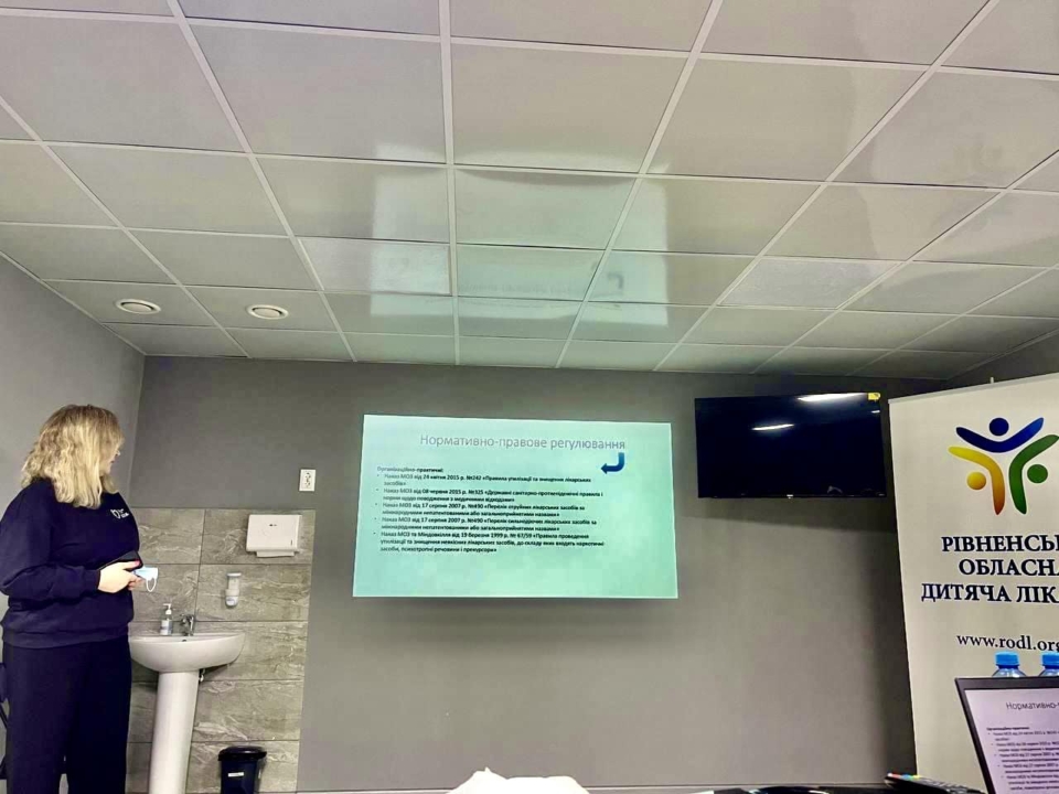 28 лютого фахівці Рівненського обласного центру контролю та профілактики хвороб провели лекційне заняття для медичних працівників Рівненська обласна дитяча лікарня / Rivne regional children’s hospital з питань поводження з медичними відходами.