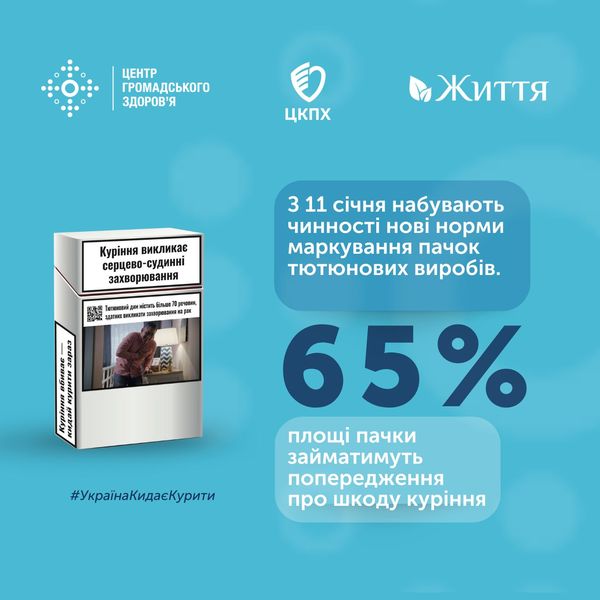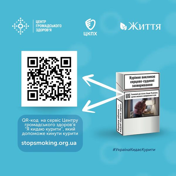 - на пачці буде розміщено QR-код з посиланням на сервіс Центру громадського здоров’я «Я кидаю курити». Сайт https://stopsmoking.org.ua містить доказові дієві методи, які допоможуть кинути курити;
