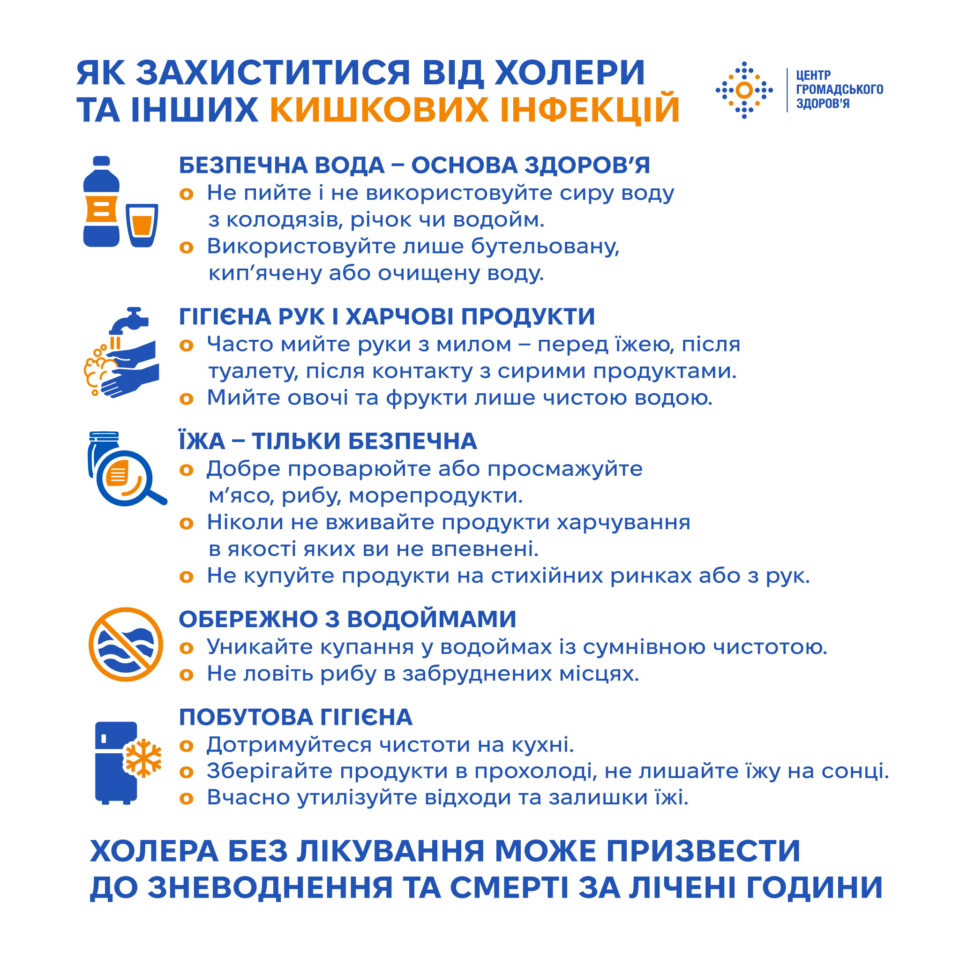 - Як захиститися від холери та інших кишкових інфекцій дивіться на інфографіці
