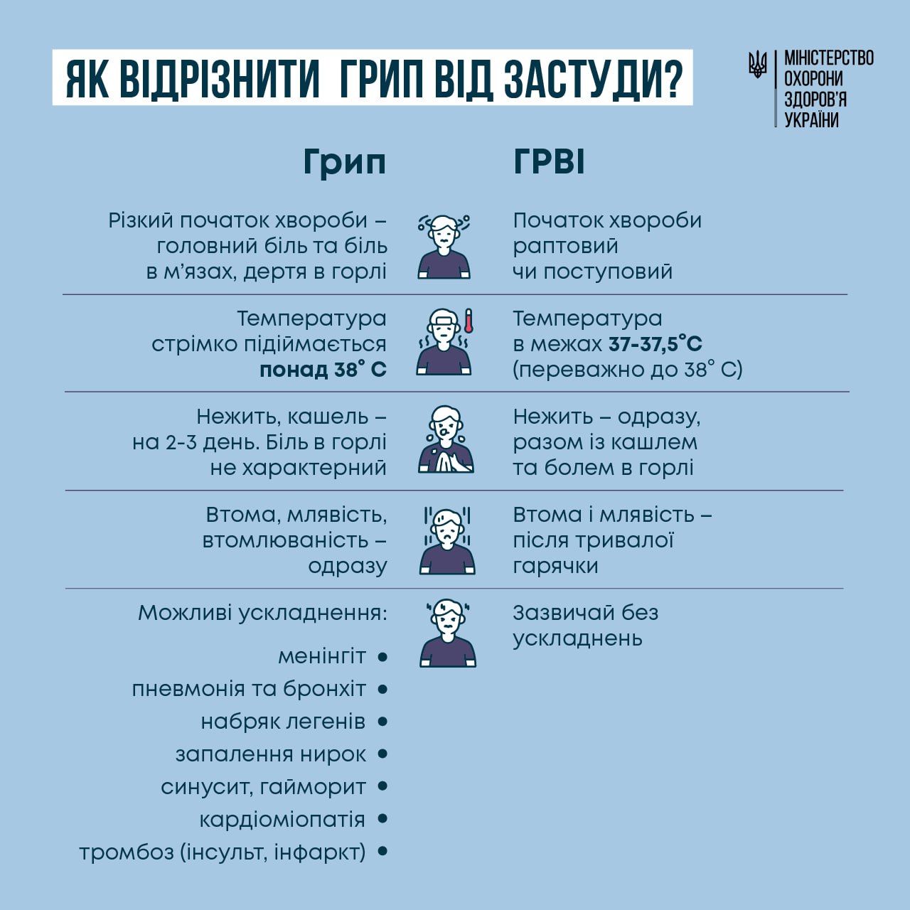 Як відрізнити грип від застуди – дивіться на ілюстрації. Збережіть цю картинку і відправте близьким!