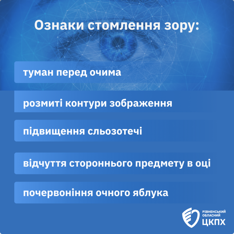 Наші очі біологічно не призначені для тривалої роботи з документами, книгами, комп’ютерами тощо. Погіршення функцій зору і висока втомлюваність очей є результатом перевантаження зору, яка посилюється на фоні погіршення здоров’я.